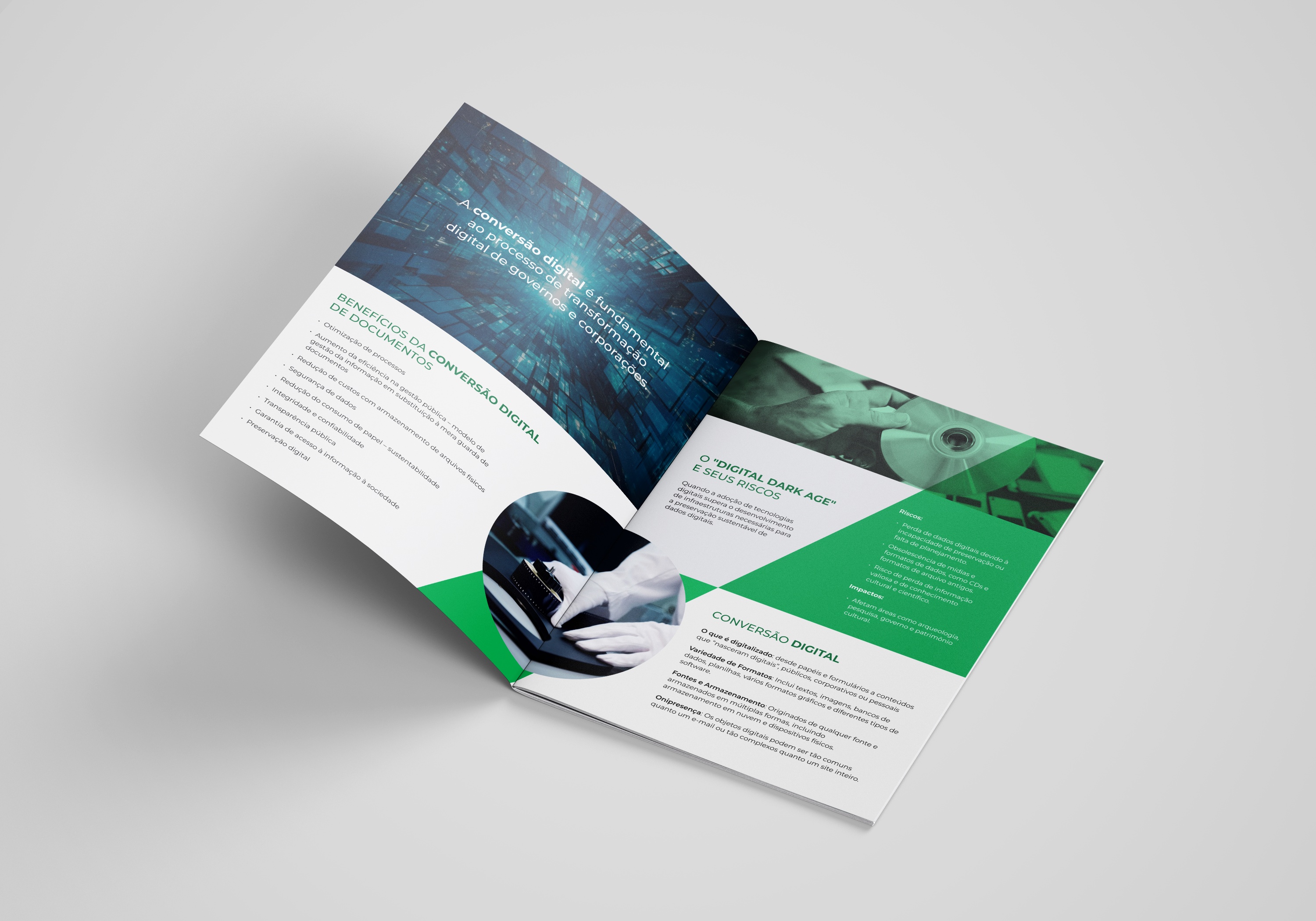 A Design Minds desenvolveu para a Safe Digital um folder no formato revista, com 12 páginas em tamanho A4, criado para comunicar de forma didática e visualmente impactante as soluções de digitalização, preservação e gestão documental oferecidas pela empresa.